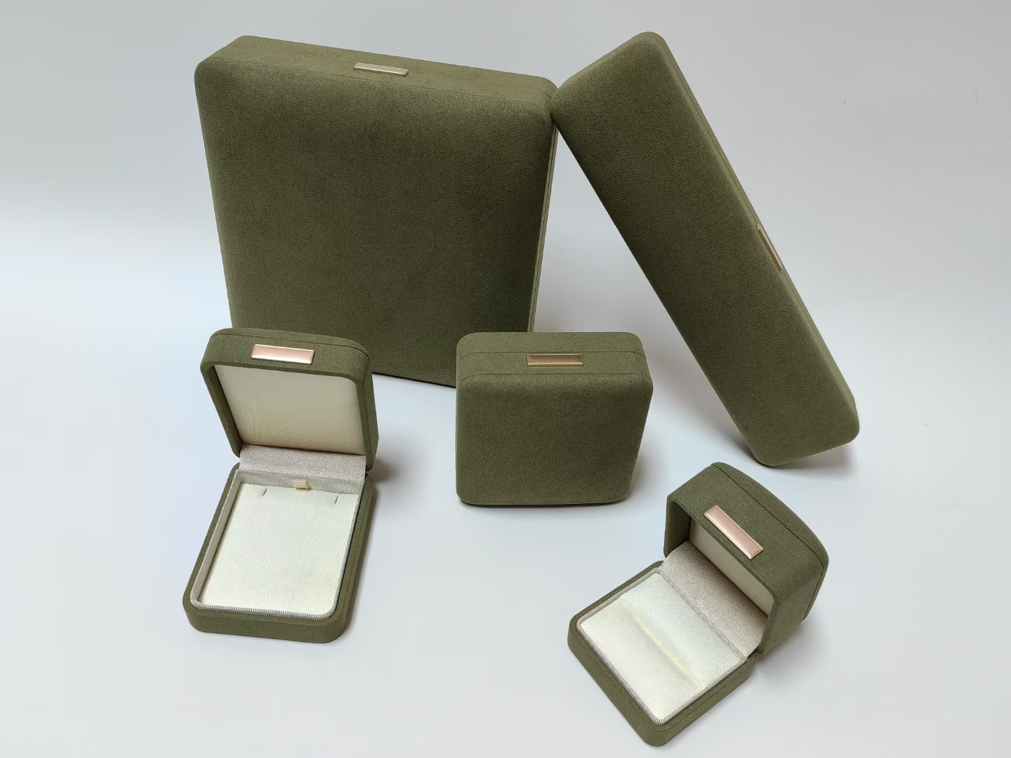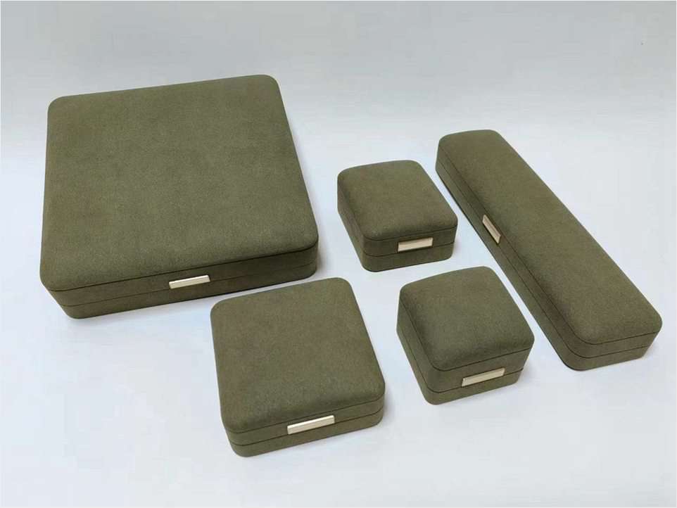 墨绿超纤珠宝礼盒套装 甄选高级超纤材质,呈现细腻绒感与持久耐磨性。套装包含五款不同规格盒型,从戒指、耳钉到项链、手镯,满足全品类珠宝收纳与展示需求。标志性的墨绿色调沉稳雅致,搭配精致金属饰件,于简约中流露轻奢格调。无论是作为品牌定制包装,还是馈赠佳人的心意之礼,皆能彰显非凡品味,让每一次开启都成为珍视与美好的仪式。