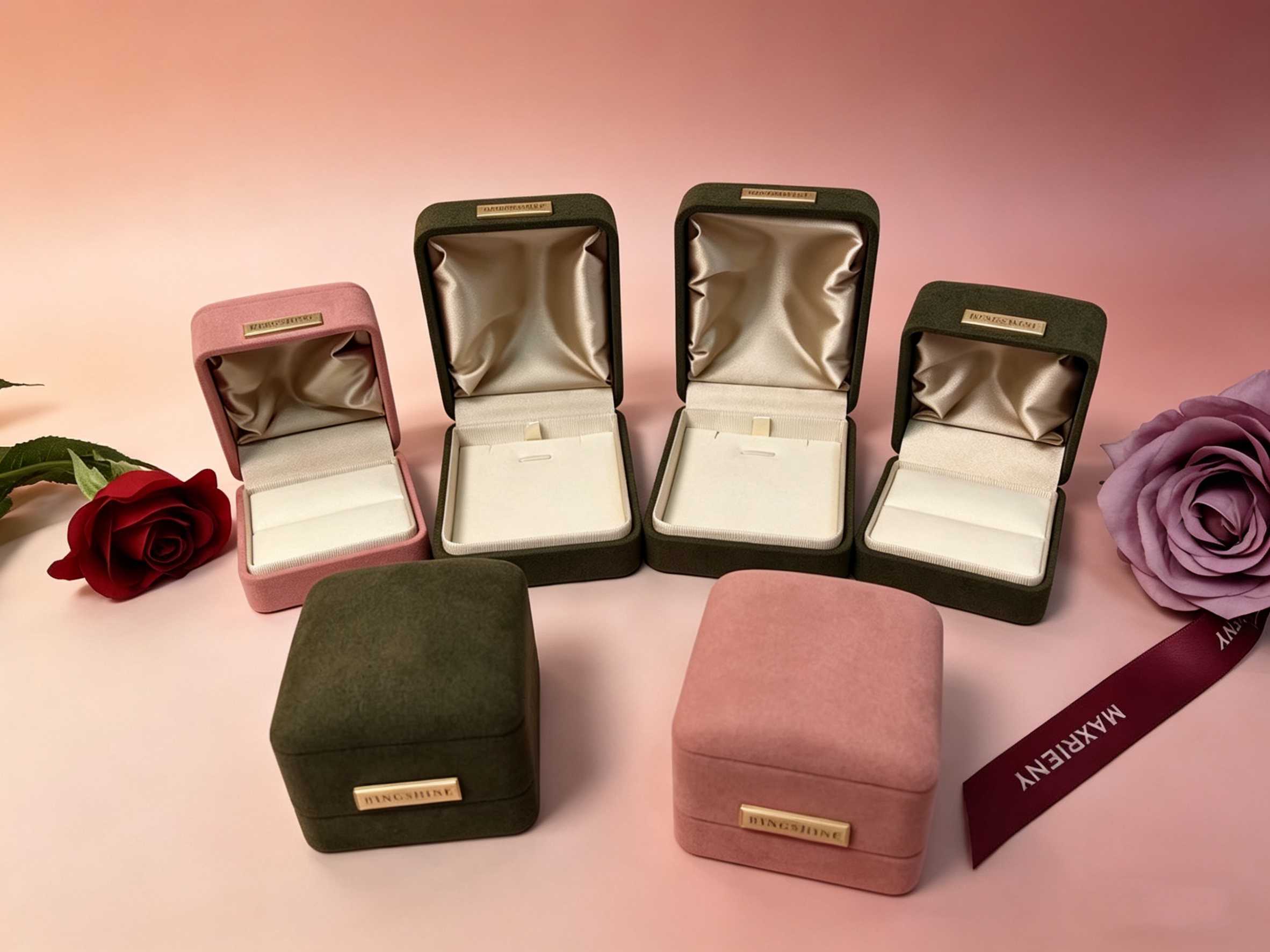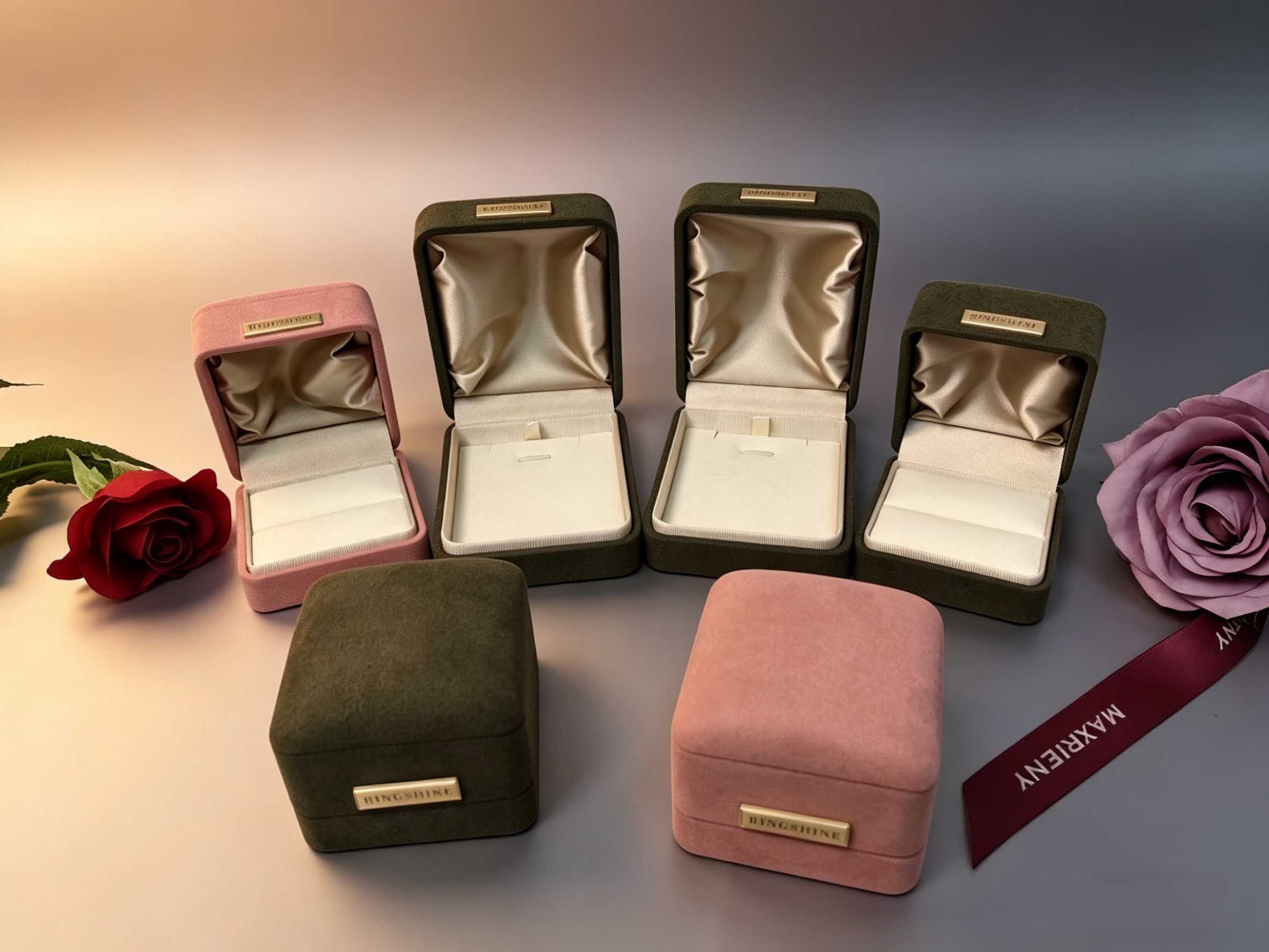 莫兰迪绒面珠宝盒、麂皮质感礼盒、香槟金缎面内衬、磁吸翻盖戒指盒、小众设计师品牌包装、婚戒专属盒、环保植绒卡位、高端伴手礼定制