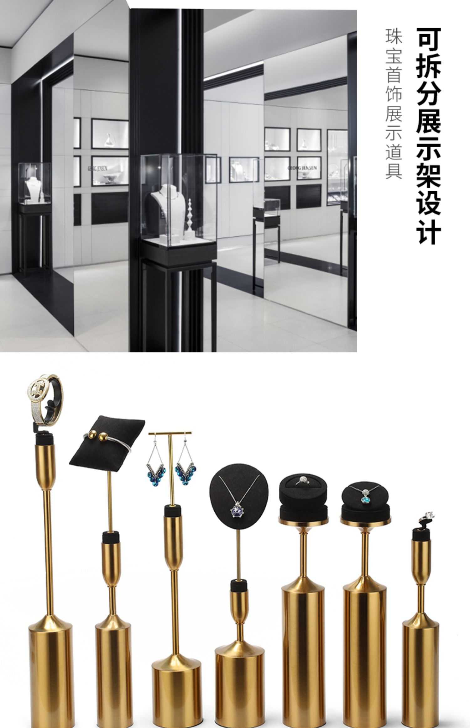 轻奢珠宝展示架、金属底座、绒布人台、项链陈列、耳环支架、戒指托盘、手镯展示、高端店铺道具、摄影布景、艺术装饰